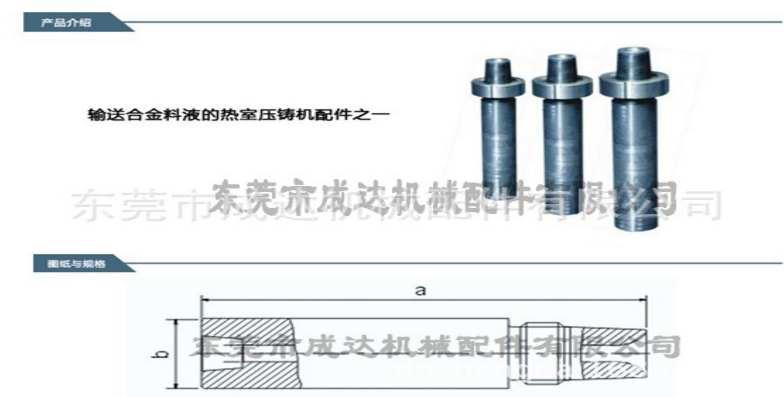 成达凭借在压铸机配件领域专业水平和成熟术的技术,以及在珠江三角洲多元化的信息优势,通过吸取国外先进的加工、热处理、氮化技术,经过多年的技术实践、研发和创新,配件使用寿命等同进口配件使用寿命,我司生产的压铸机配件销往全国各地和远销新加坡、越南、台湾等地区。